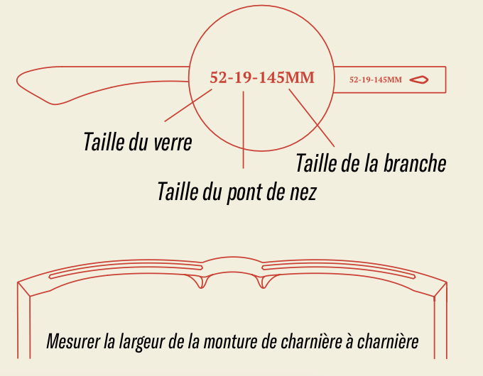 Elles sont habituellement inscrites à l’intérieur de la branche. À défaut, la largeur charnière-à-charnière peut être mesurée avec une règle.