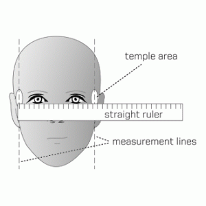 Pour déterminer plus précisément la taille adaptée, prendre une règle ou un mètre ruban puis placez-vous face à un miroir afin mesurer l’écart de vos tempes.