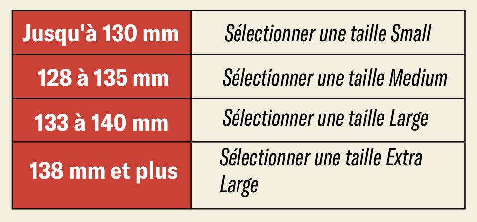 Comparer ensuite cette mesure avec notre tableau pour identifier les tailles correspondantes.