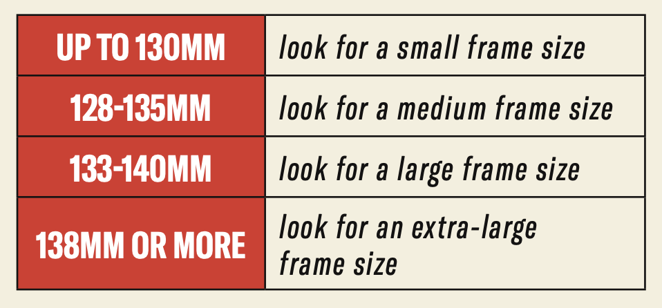 The measurements of a frame that already fits you well can serve as a useful reference.