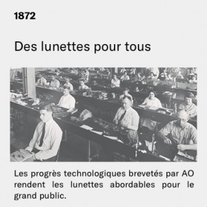 American Optical a été fondé en 1833. Après des débuts essentiellement orientés vers le développement de verres optiques, c'est en 1876 que AO commença à produire ses lunettes de soleil à Southbridge, Massachussets. American Optical est donc considéré, à juste titre, comme le premier fabricant de lunettes de soleil du monde entier. En 1913, AO dépose le brevet de protection contre les UV avec le scientifique William Crookes.