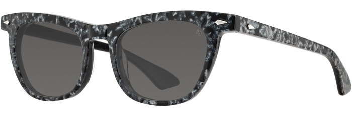 Le modèle Lucinda fait revivre la Cosmetan Collection des années 1950 et 1960. Sa forme douce en cat-eye dégage un glamour rétro, alliant lignes affirmées et motifs féminins. À l’époque, ce modèle novateur se distinguait par son utilisation de tissus laminés et ses coloris inédits dans l’univers de la lunetterie. Pour cette réédition contemporaine, AO a collaboré avec les meilleurs producteurs mondiaux d’acétate afin de créer des motifs évoquant la texture du tissu, pour un style au charme authentiquement vintage.